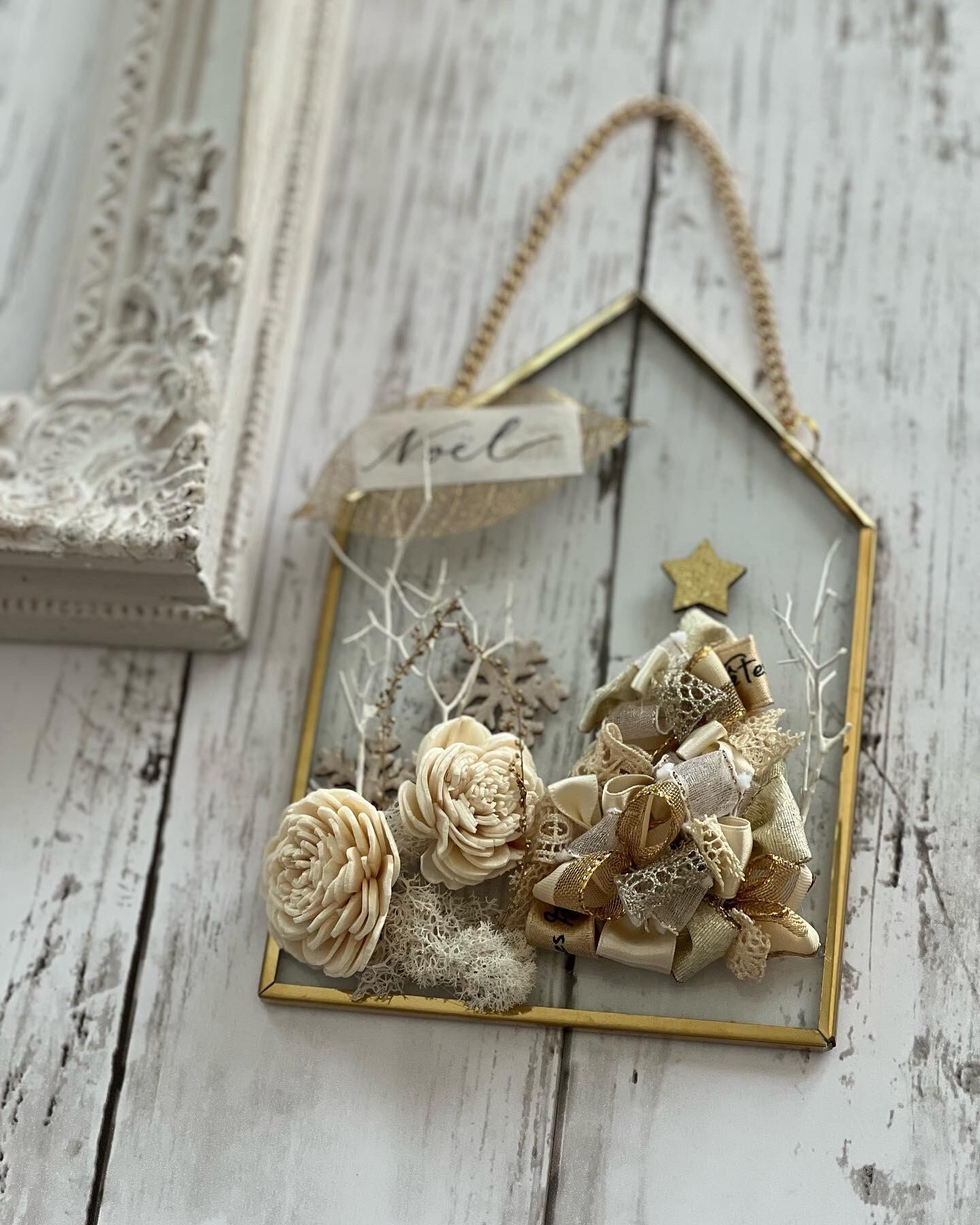 何種類ものリボンを使って作るツリーをデコレーションした、クリスマスのミニ壁掛けです♡