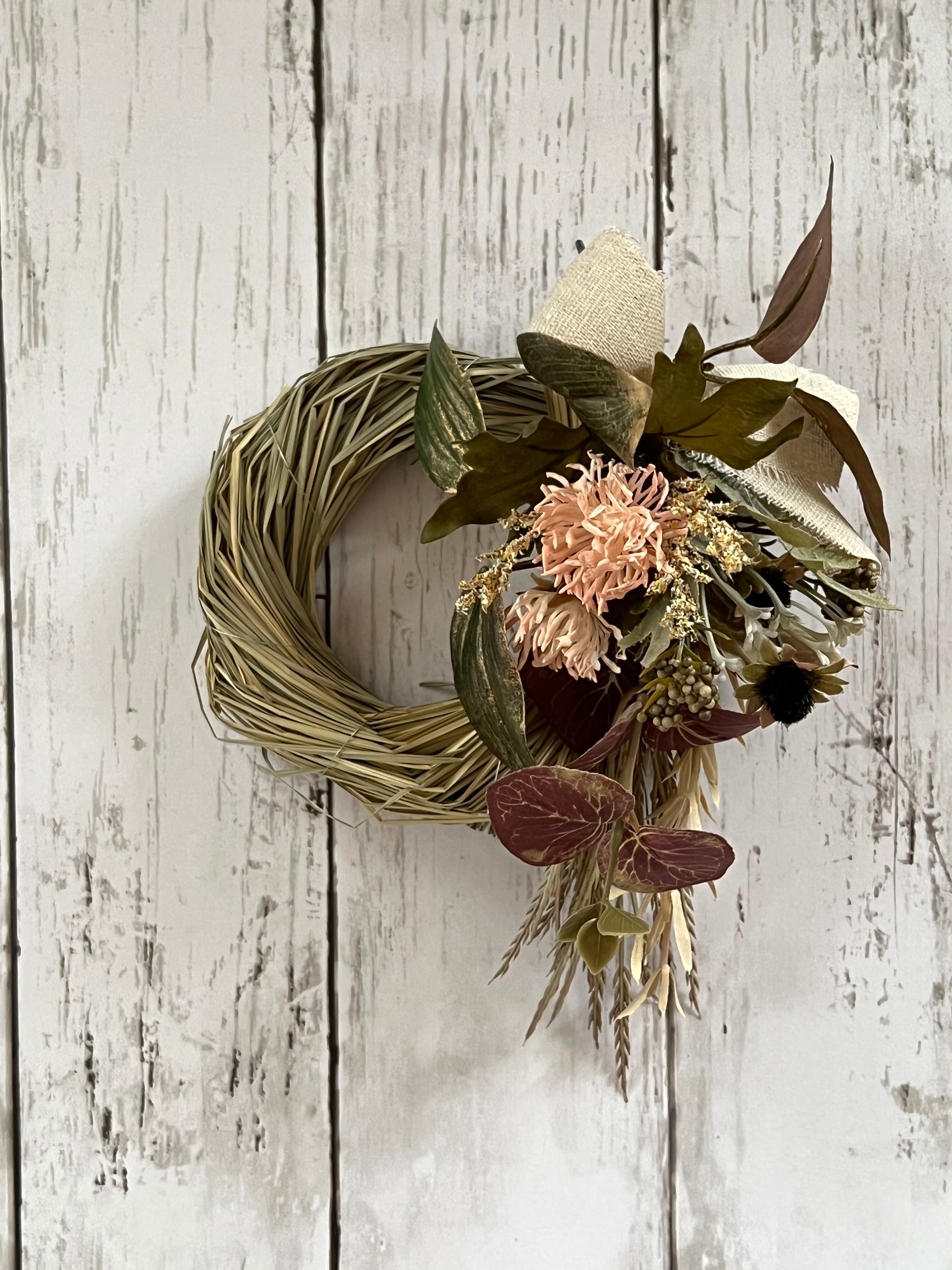 値下げしました!スワッグとしても長く飾れるしめ縄リース、ドライ風造花、しめ縄